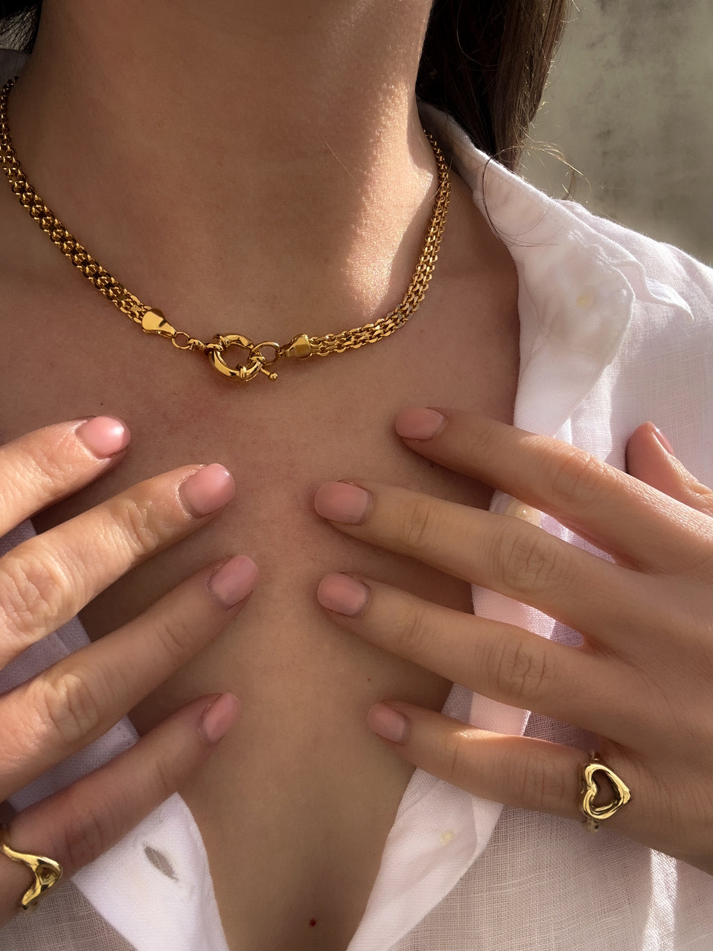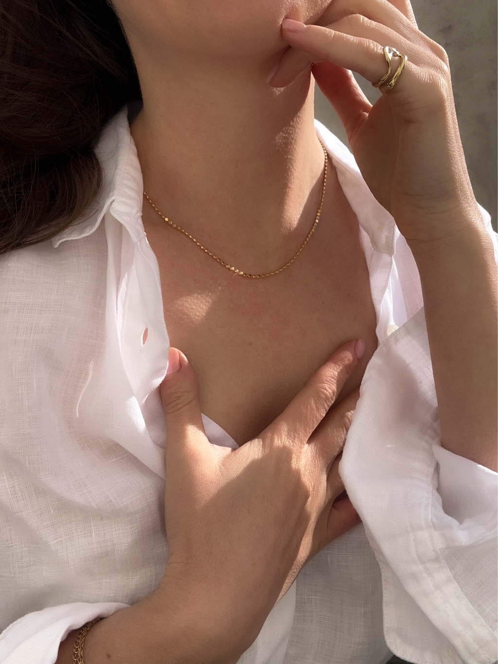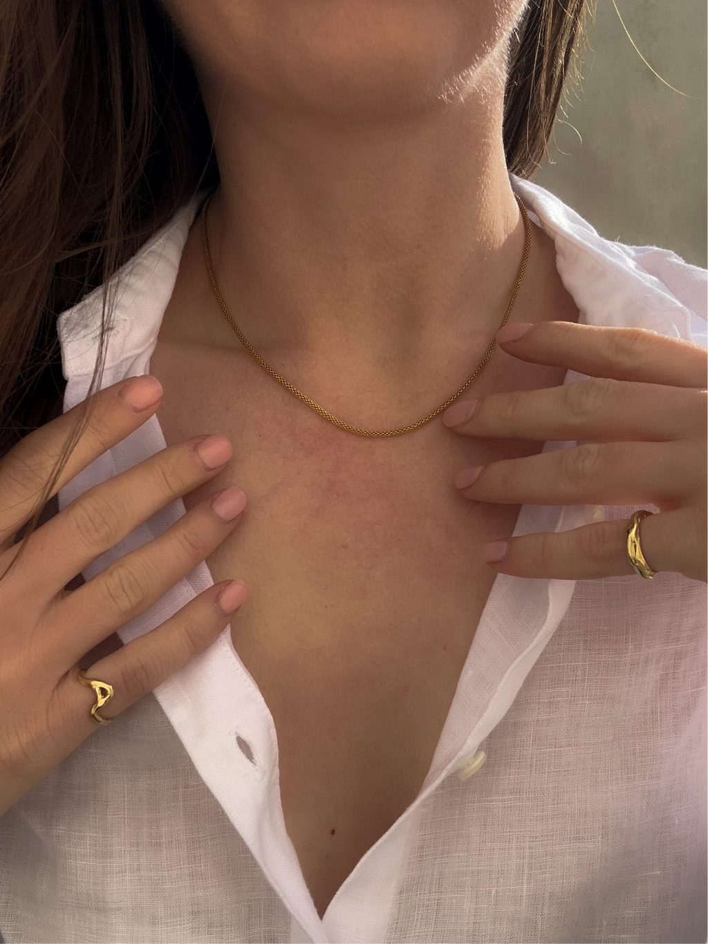 A curated edit of 18k gold-filled chains, designed to layer, last, and carry the quiet luxury of real gold, without the $1,000 price tag. Each piece was chosen for its delicate details and timeless patterns, some bold, some soft, all made to stay with you for years. Hypoallergenic, water-resistant, and made to be worn every day, Golden Thread is about jewellery that feels effortless, meaningful, and beautiful without compromise.